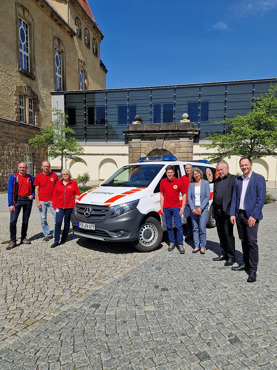 Am Dienstag, den 23.04.2025 übergab Landrat Michael Geisler nach umfangreichen Umbauarbeiten einen vollausgestatteten Mannschaftstransportwagen an die Bergwacht in Bad Schandau. Im Beisein von Thomas Kunack, Bürgermeister Bad Schandau, Rita Seidel, Vorstand DRK Kreisverband Sebnitz e. V., Andrea Mothes, Filialdirektorin Ostsächsische Sparkasse Dresden in Pirna-Sebnitz und Christoph Weber, Koordinator der Bergwacht, wurde die neue Technik in Empfang genommen. Durch eine Optimierung des Fahrwerkes und eine Höherverlegung des Fahrzeuges kann ein optimaler Einsatz im Gelände gewährleistet werden. Außerdem wurde das Fahrzeug mit Allterrainreifen, fünf Funkgeräten und einer Tyralkorbtrage mit Rad ausgestattet und ist im Ortsteil Papstdorf des Kurortes Gohrisch stationiert. Die Gesamtkosten des Umbaues belaufen sich auf 12.000 Euro und werden von der Ostsächsischen Sparkasse Dresden mit 8.000 Euro und dem Förderverein Nationalparkfreunde Sächsische Schweiz mit 4.000 Euro unterstützt.