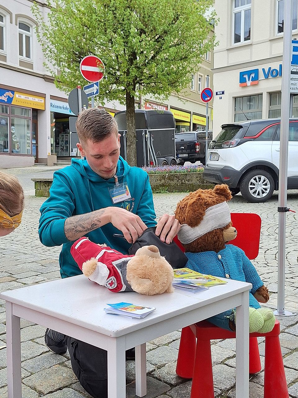 Einen ersten Einblick in die Arbeit des Jugendrotkreuz Sebnitz erhielten Interessierte beim Familienfest am vergangenen Wochenende auf dem Sebnitzer Marktplatz. Hier konnten in der "Teddyklinik" verletzte Kuscheltiere richtig versorgt werden und jeder Besucher erhielt wichtige Informationen zur Jugendrotkreuzgruppe in unserem Kreisverband.