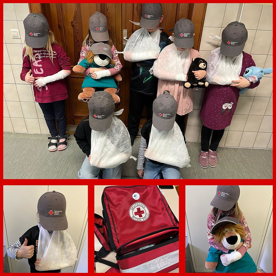 Mit vollem Einsatz und großer Neugier, aber auch einem bereits gutem Wissensstand, lernen die Kids vom DRK Hort "Rasselbande" Erste-Hilfe zu leisten. David Berge vom Jugendrotkreuz unseres Kreisverbandes zeigte uns die wichtigsten Basics der Ersten-Hilfe.