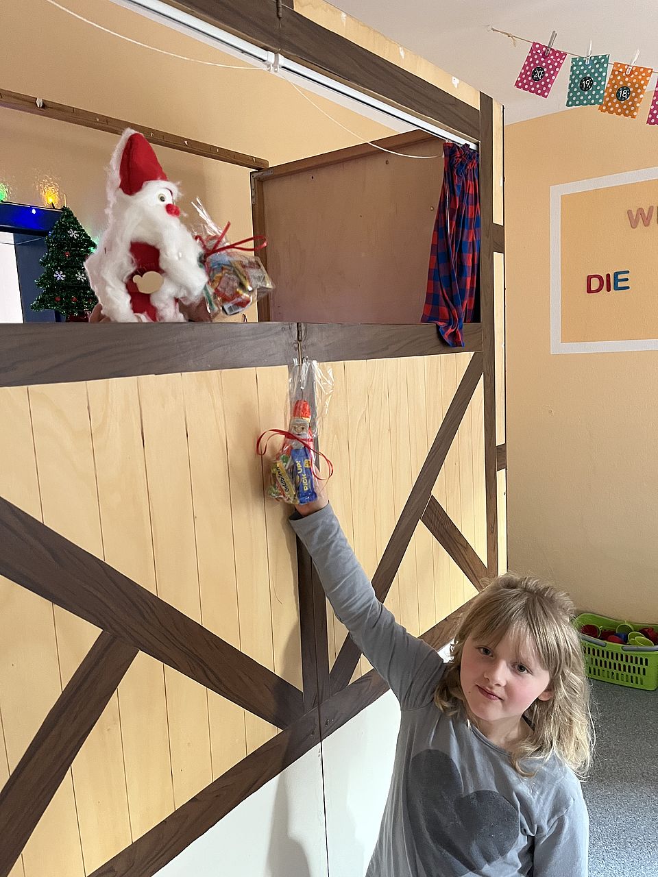 Was für eine gelungene Überraschung! Der Kasper hatte mit Gretel die Idee Weihnachtsplätzchen zu backen, doch leider sind sie total verbrannt und waren dunkelbraun. Die listige Hexe stibitzte die Plätzchen, denn sie war überzeugt davon, dass es Schokoladenplätzchen waren. Sie hat alle verbrannten Kekse gegessen und schreckliches Bauchweh bekommen. Und als hätte das nicht schon gereicht, hatte sie nur eine Schuhbürste im Stiefel, weil ihre Schuhe ganz unheimlich dreckig waren. Was für ein Spaß für unsere Kleinen! Als Höhepunkt kam der Nikolaus ins Puppentheater und verteilte kleine Geschenke an alle Kinder vom DRK Haus „Kinderglück“.