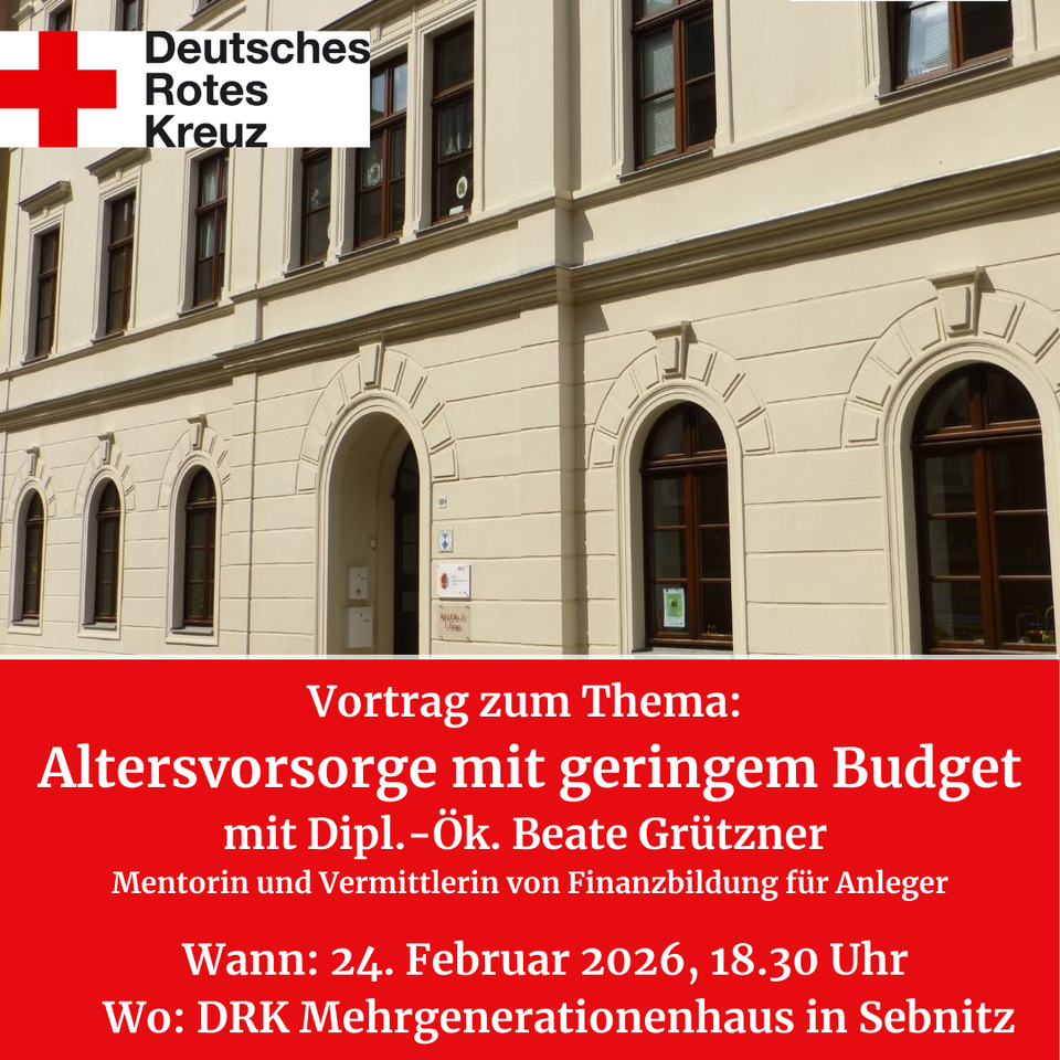 Im Rahmen dieses Vortrags informiert Frau Dipl.-Ök. Beate Grützner über verschiedene Formen der Altersvorsorge und ihre Vor- und Nachteile. Wie schafft man es, mit wenig Geld eine Altersvorsorge aufzubauen? Lohnt sich Sparen mit wenig Geld? Gibt es Alternativen zu Riester und Rürup? Der Vortrag möchte Sie ermutigen, das Thema Altersvorsorge endlich anzugehen. Diplom-Ökonomin Beate Grützner ist selbstständige Finanzberaterin, Referentin und Autorin. Als ehemalige Bankerin engagiert sie sich dafür, dass möglichst viele Menschen ihre Geldan-gelegenheiten in die eigenen Hände nehmen. Sie ist unabhängig und verkauft keine Finanzprodukte oder Versicherungen.